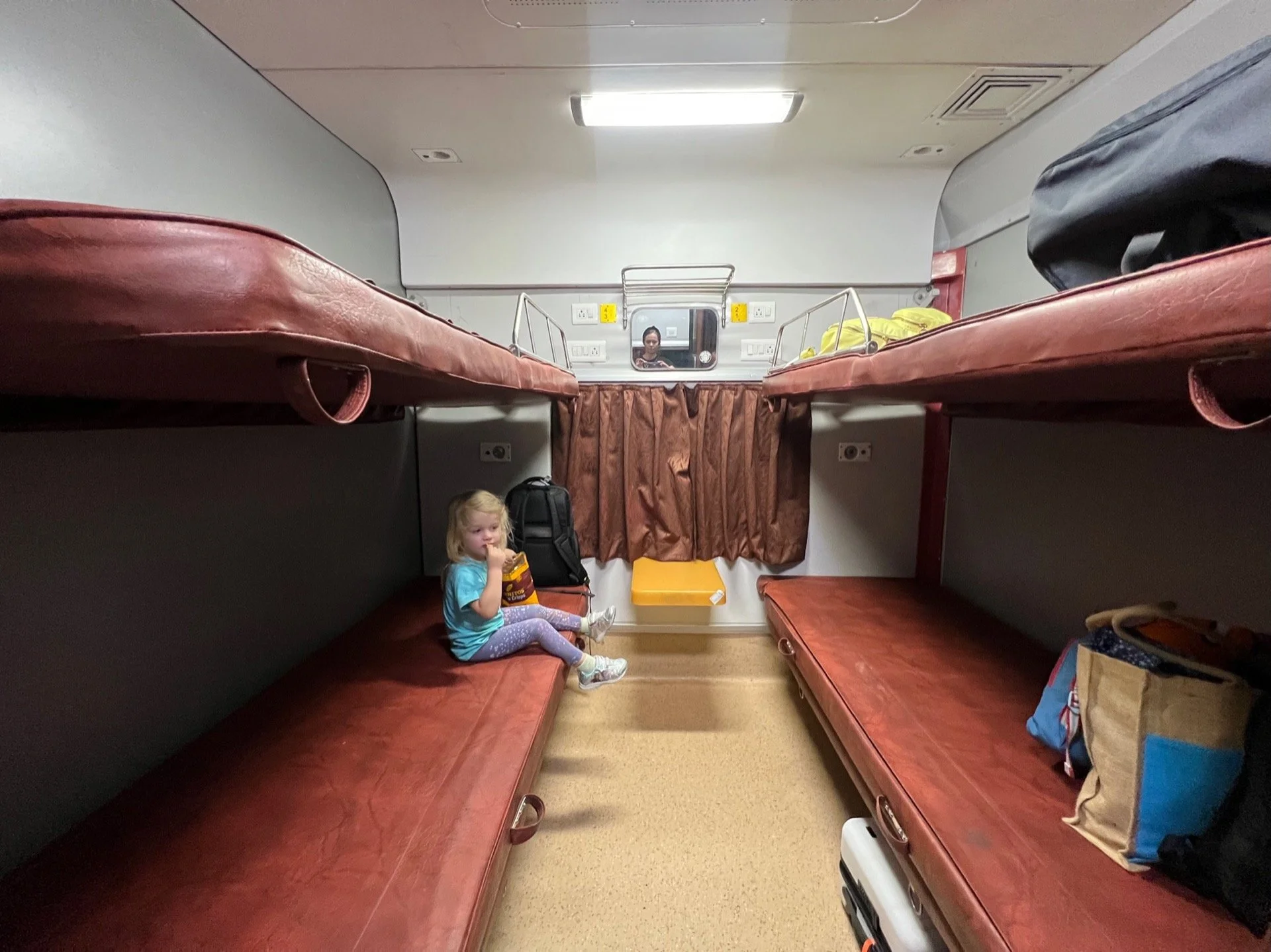 From an enjoyment perspective, overnight trains are just super fun—you get to sleep on a train. Zoe had three overnight trains prior to this—one from Udaipur to Agra, India, one from Helsinki to Rovaniemi, Finland, and one from Naples to Milan, Italy. All were good experiences for Zoe (who, in India, notably managed to sleep through the midnight throng of riders attempting to occupy the hallway of our sleeper car while the conductor very loudly asked them to leave).