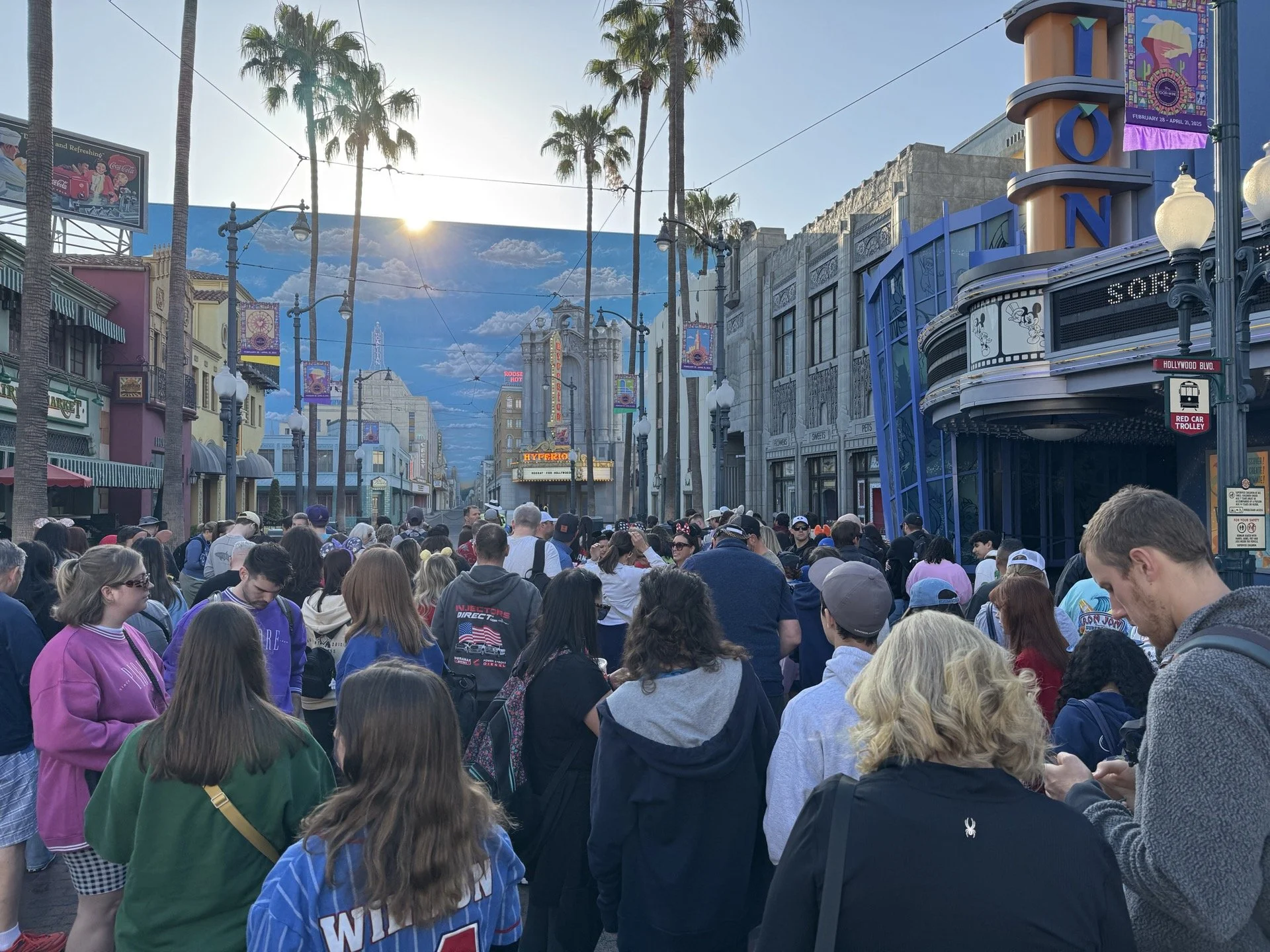Second, about five minutes later (or sometimes just immediately), guests are actually let into the park. Those who already scanned can walk right through, everyone else will be scanned as they enter. Guests are corralled at different points around Buena Vista Street, but we only focus on two spots here.