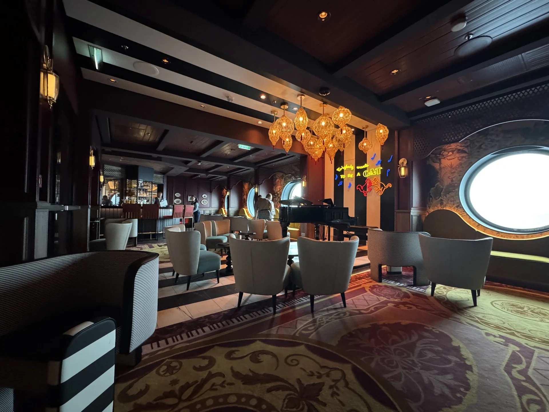 I went to the 10:30PM “Sound Tracks: Music from the Parks” in Scat Cat Lounge. This was a great piano set with modern and throwback Disney parks tunes, complete with a lot of fun facts. It was one of my best experiences I had aboard the ship (of course, I’m obliged to say here that the bar had significant delays serving customers—not me, for the record—as they rotated staff)