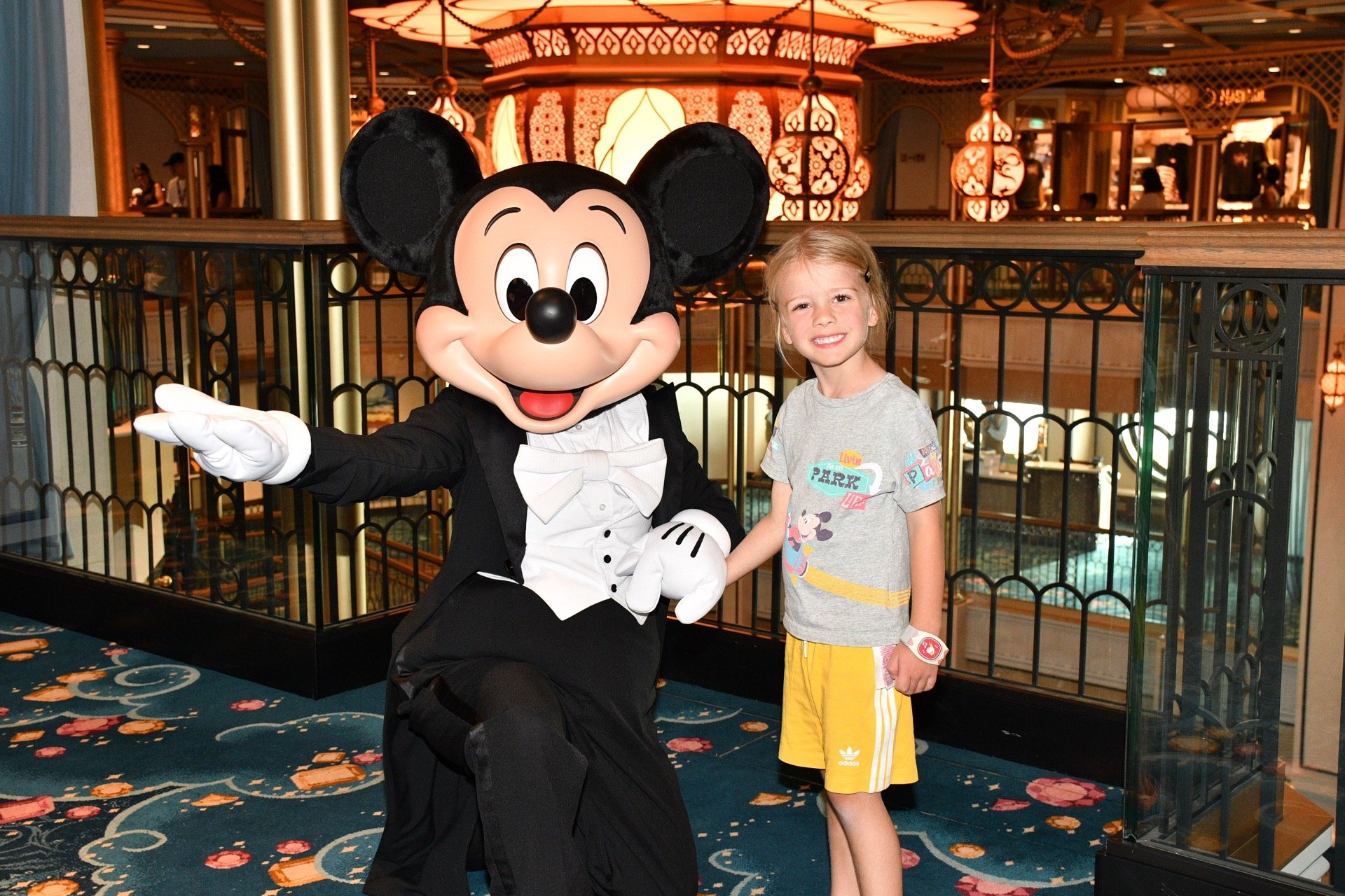 Mickey was scheduled to greet at 5:15PM, so we figured we’d try and squeeze that in before queuing for the 6PM Moana showing. He started greeting 2 minutes late, but he was in his formal attire, and Zoe got some great pics just before 5:30PM. We were seated in the balcony of the Walt Disney Theater by 5:36PM.