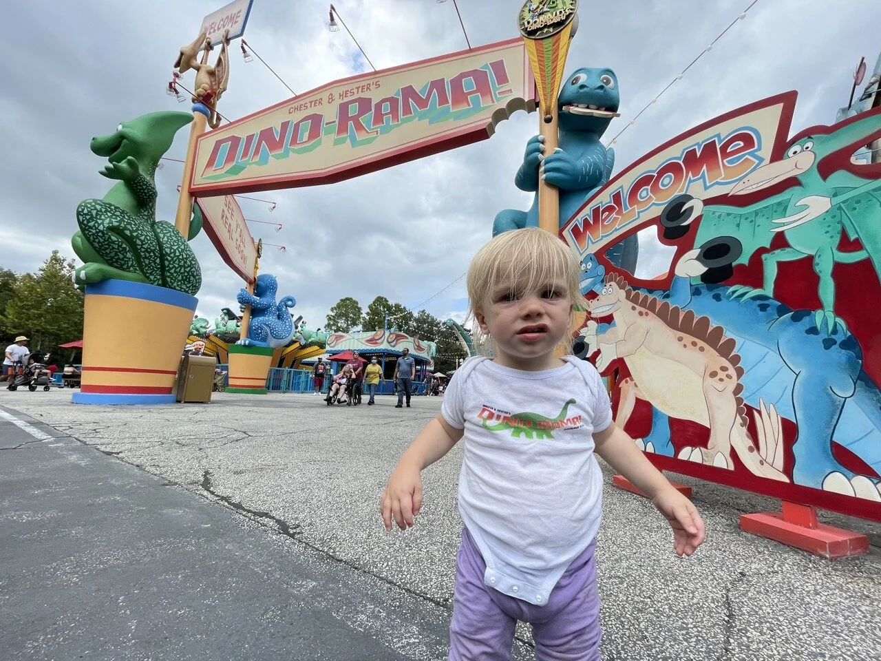 Since we were already nearby, this was a good time to swing by Starbucks (Creature Comforts) and the Baby Care Center. The Baby Care Center is hidden a bit, but if you’re facing Starbucks it’s to the right of it. After a diaper change and with venti beverages in hand, we headed over to Dinoland USA where we got to enjoy something new for us—The Boneyard!