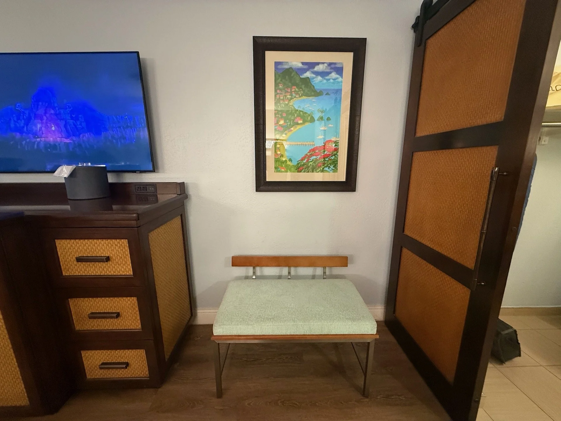 The regular (not “Under the Sea”) Caribbean Beach rooms lag behind most of the rooms at Disney World as far as refurbishment goes. Even with the 2024 updates that mostly just removed the carpeting, these rooms are not up to the quality of the rooms at the other moderate resorts. They’re stuck in a more bland minimalism that quickly went out of date (if it ever was in fashion).
