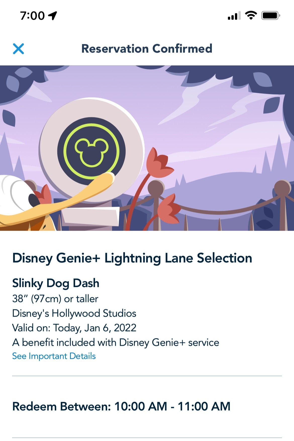 I woke up and bought Genie+ at 6:45AM. I ran Genie setup and made sure my only “Top Pick” attraction was Slinky Dog Dash, so it was at the top of my Tip Board. I opened up a world clock on my computer and pulled to refresh right at 7AM and tapped through, winding up with a 10AM-11AM slot. By about 7:00:09 the slots were in the evening, and by about 7:00:20 they were gone.
