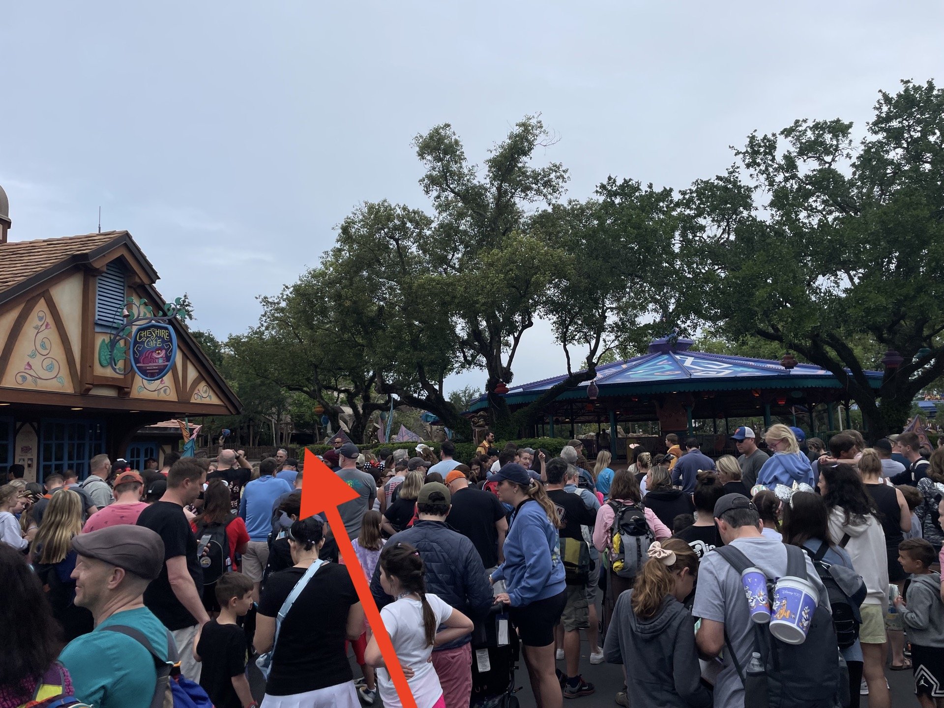 8:58AM — Merge with Adventureland rope drop crowd (oh no, so many people!)