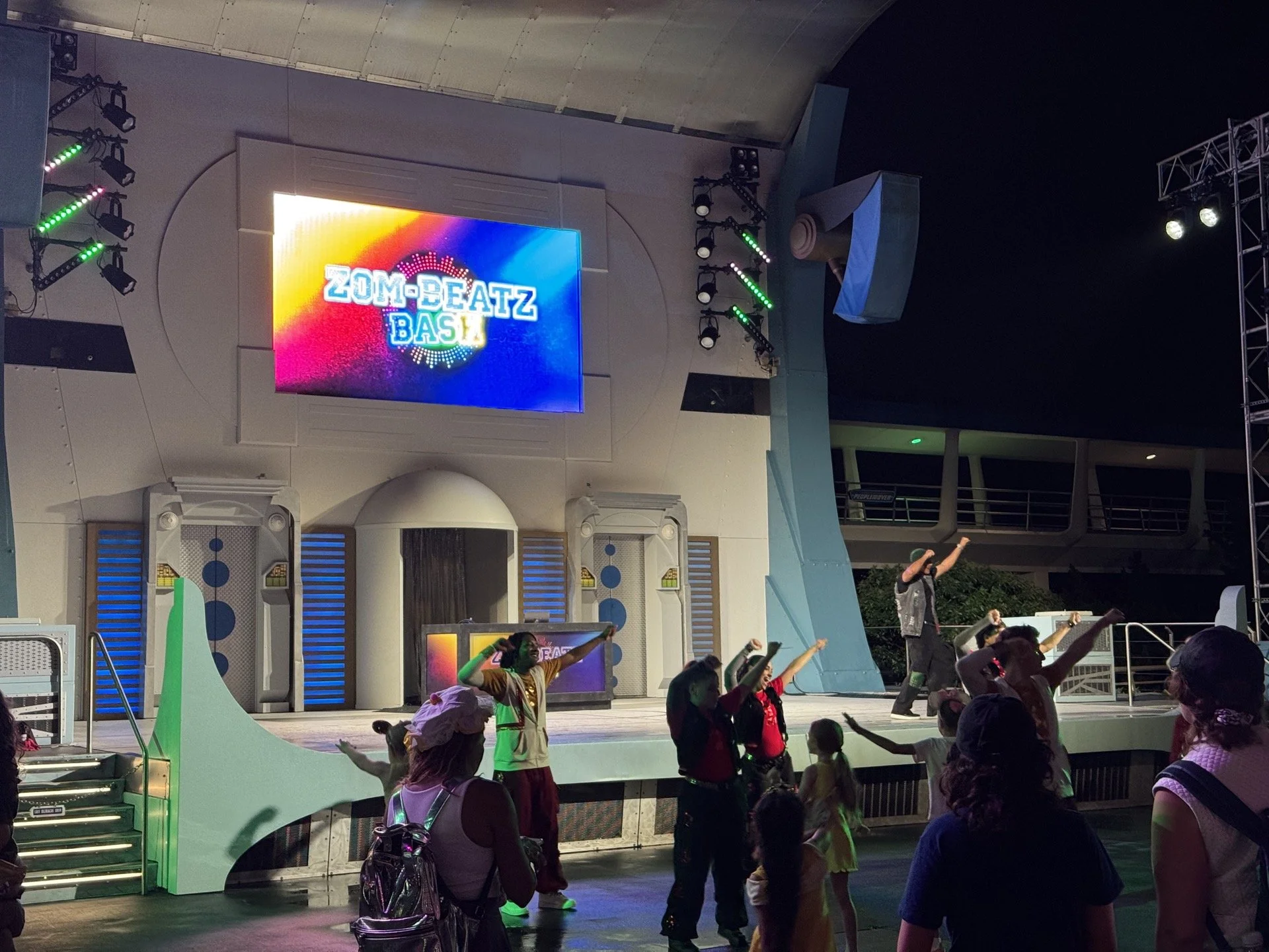 This one celebrates the Zombies franchise and is hosted on the RocketTower Plaza Stage in Tomorrowland. You’ll inevitably pass by it at some point during its operation from 7PM to 12AM.