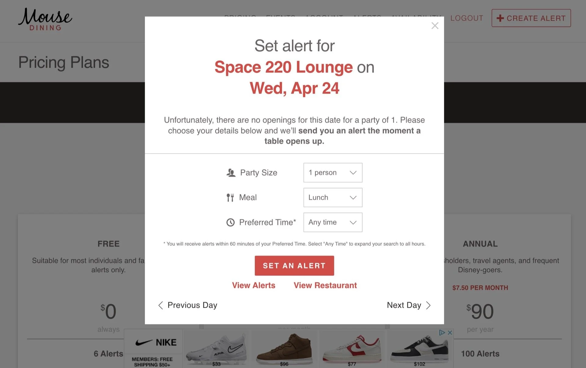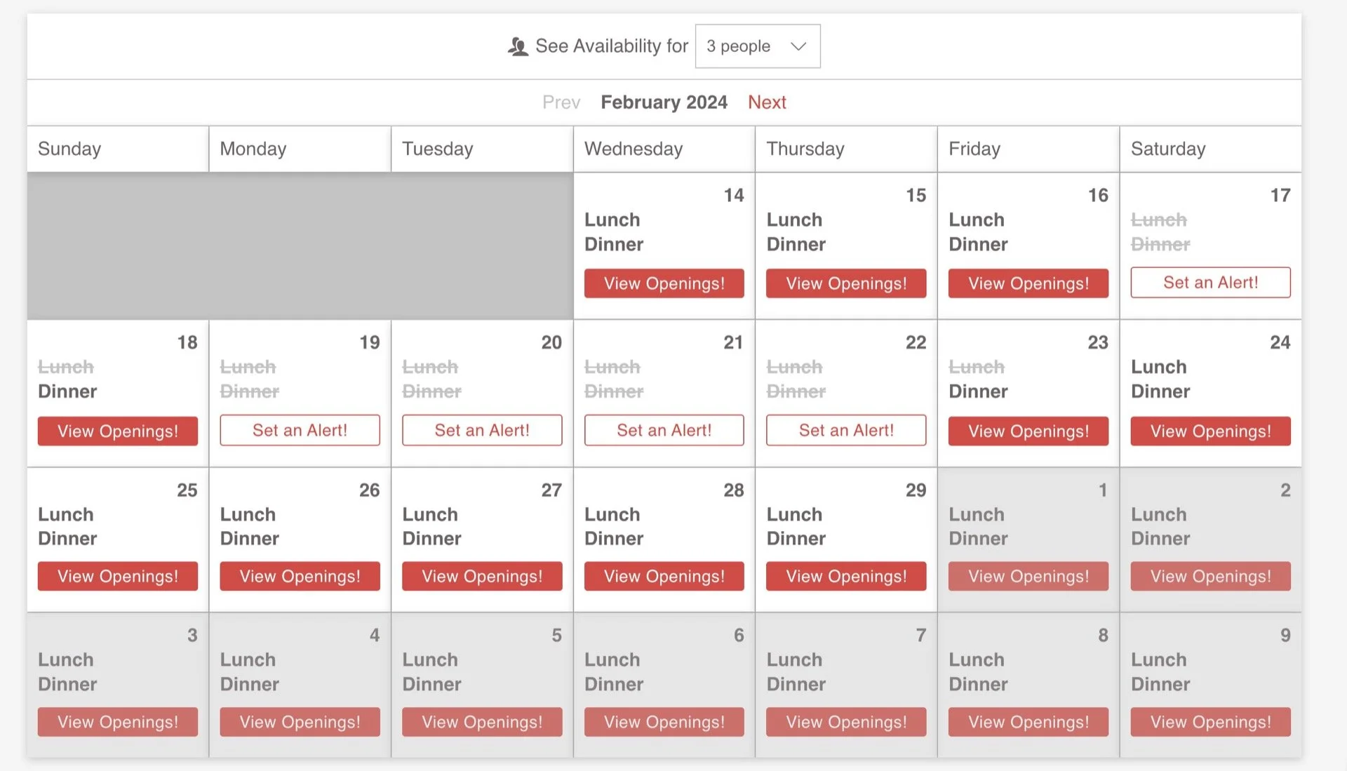 Of course, you need flexibility to make this work. My approach was to start broad—if I could make a mealtime work, I’d set an alert for it. Then when I snagged anything that worked, I’d narrow my alerts down to better times.