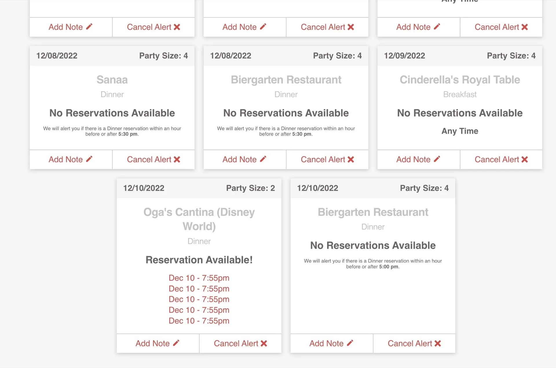 The old solution to this was to just make a bookmark on your computer and check back for reservations at regular intervals (I’ve actually got such a bookmark for a Disney Cruise Line Castaway Cay Cabana booking setup right now…fingers crossed). Of course, if anyone is checking more often than you for a popular restaurant, you’re likely to still miss out on any spots that open up.