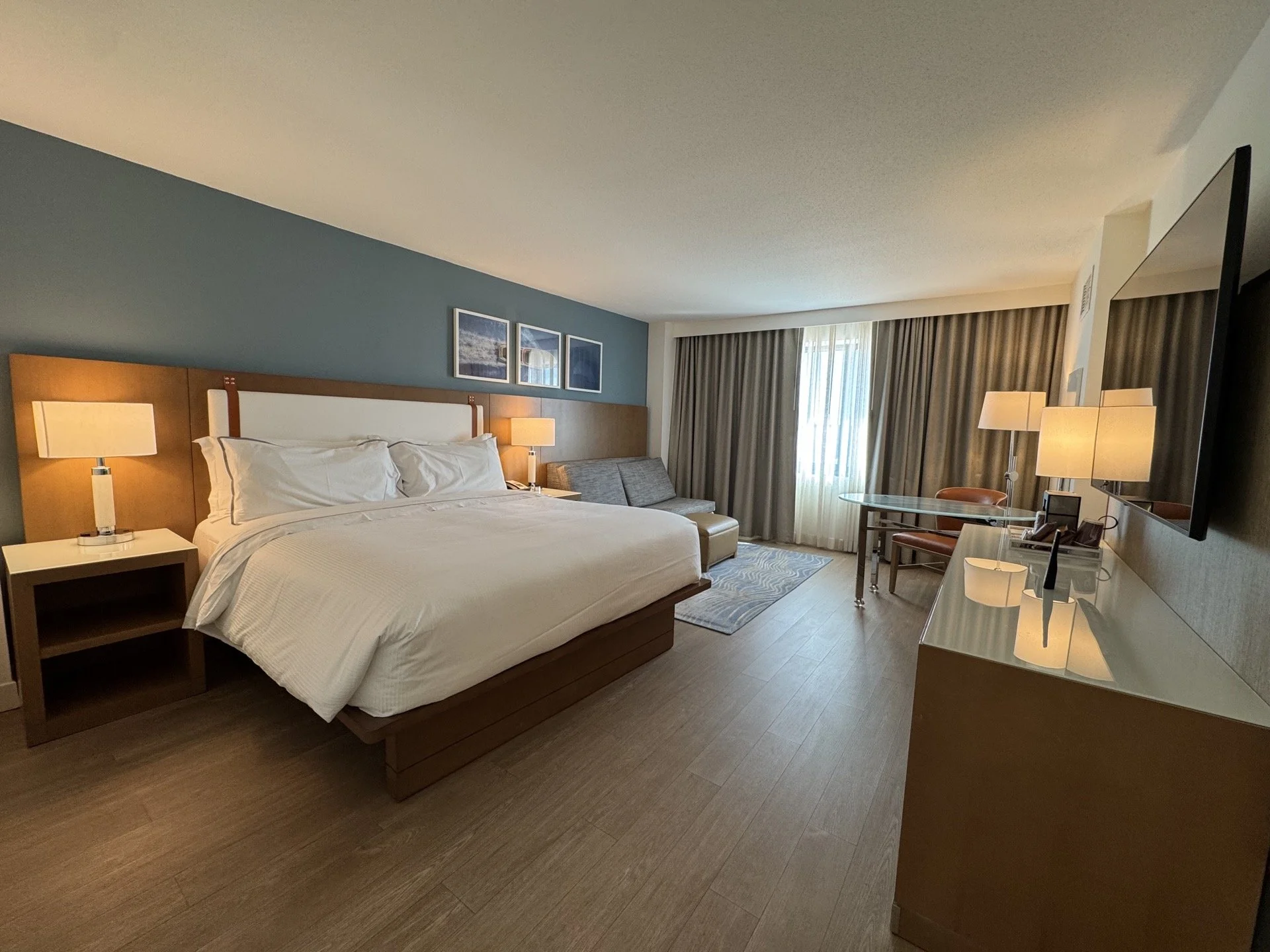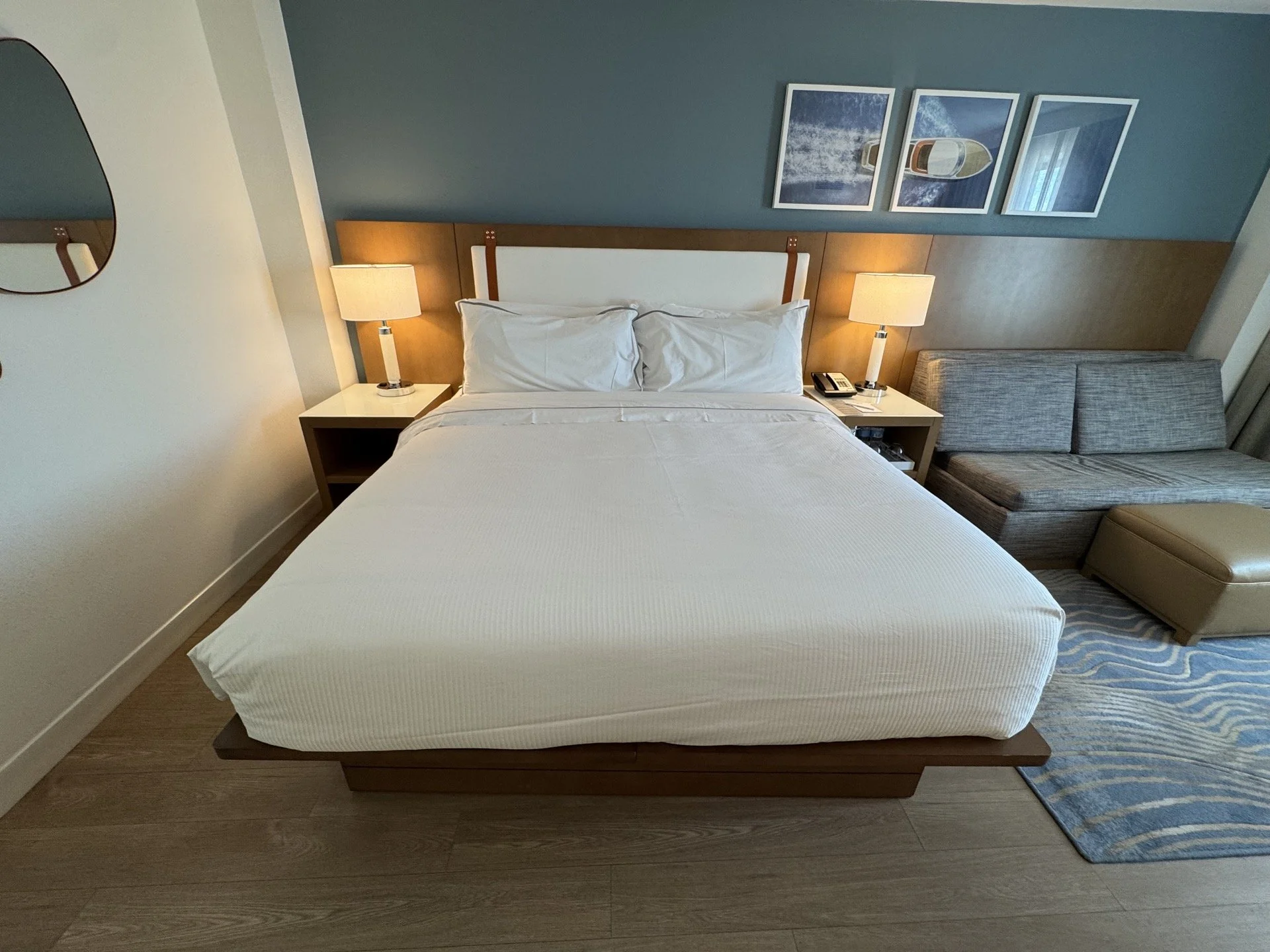I booked one night at the Walt Disney World Swan using a free night certificate I had for Marriott Bonvoy. Swan rooms range from 58,000 to 87,000 this time of year. Cash rates start around $350. There’s also a $50 night resort fee, plus taxes and fees, that came out to a total of $56.25 for my night.
