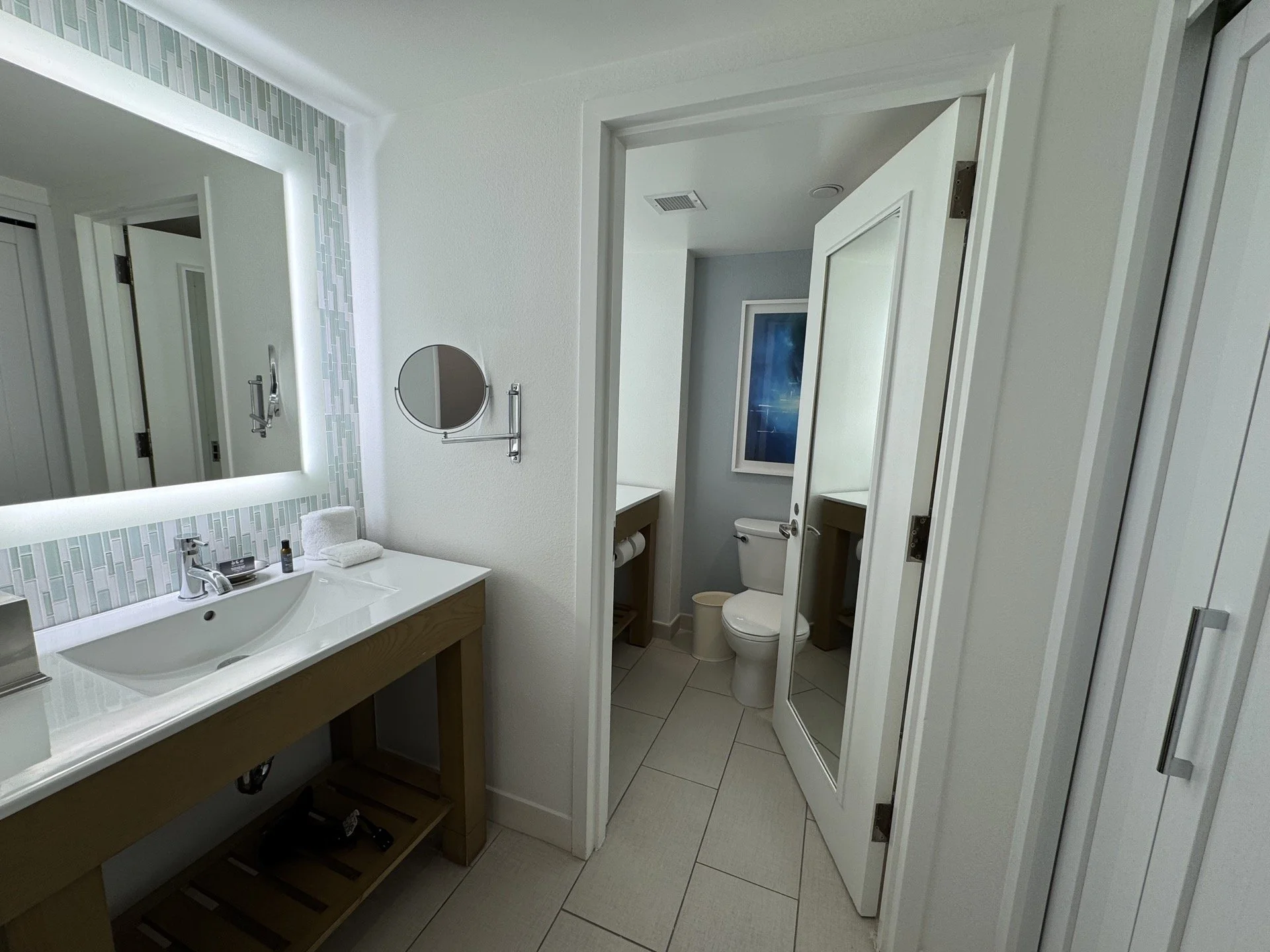 As compared to the aesthetics of Disney rooms (remember, this is not a Disney hotel), I’d say these rooms sort of fall between the current and previous generation of rooms. The most current Disney rooms are refined but themed, and a step away from the minimalism that gave us hospital room comparisons when discussing the previous generation of rooms.