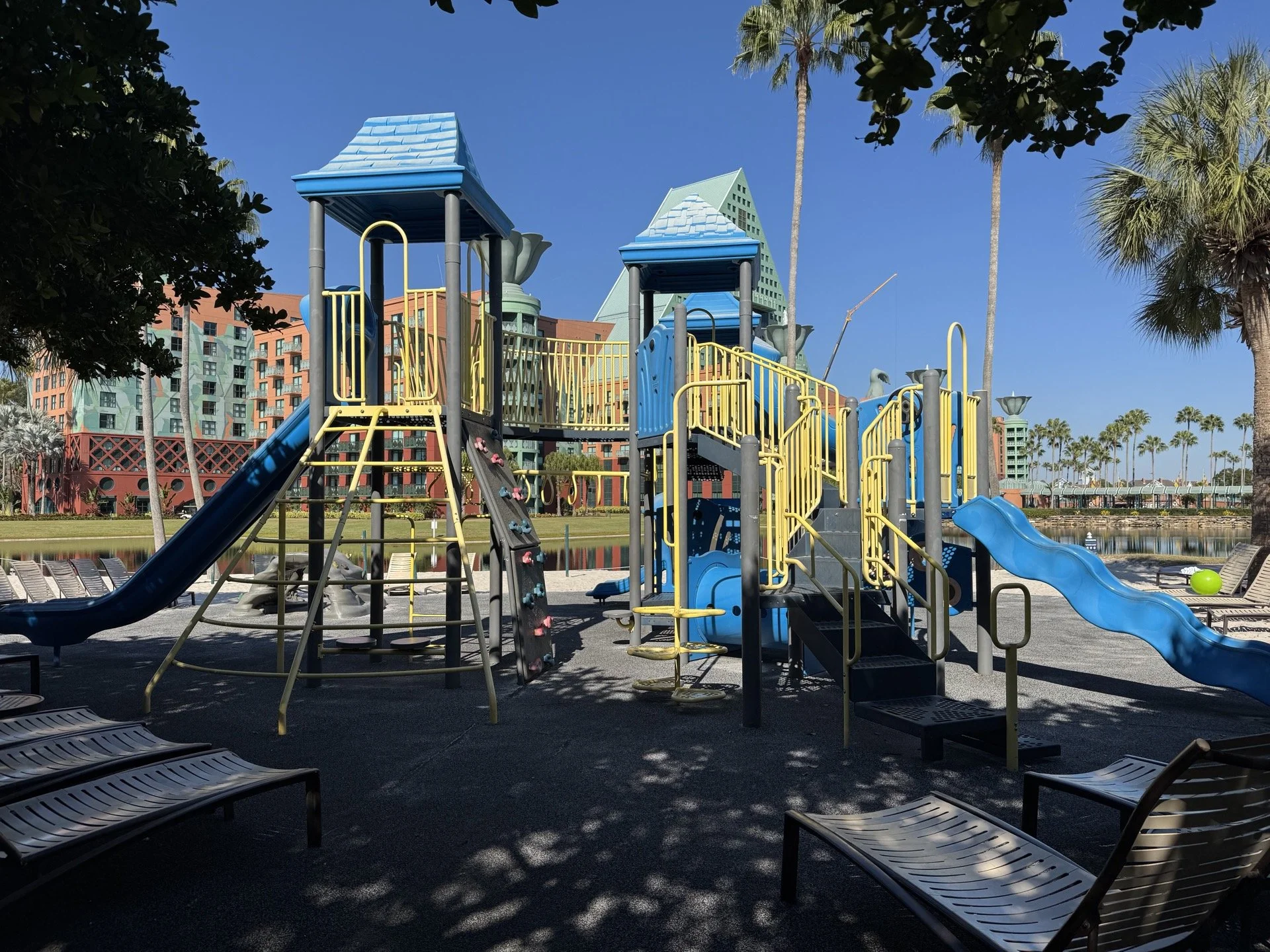 There’s a small lap pool just outside the fitness center, along with a larger “grotto” complex between the Swan and Dolphin. There’s also a small playground.