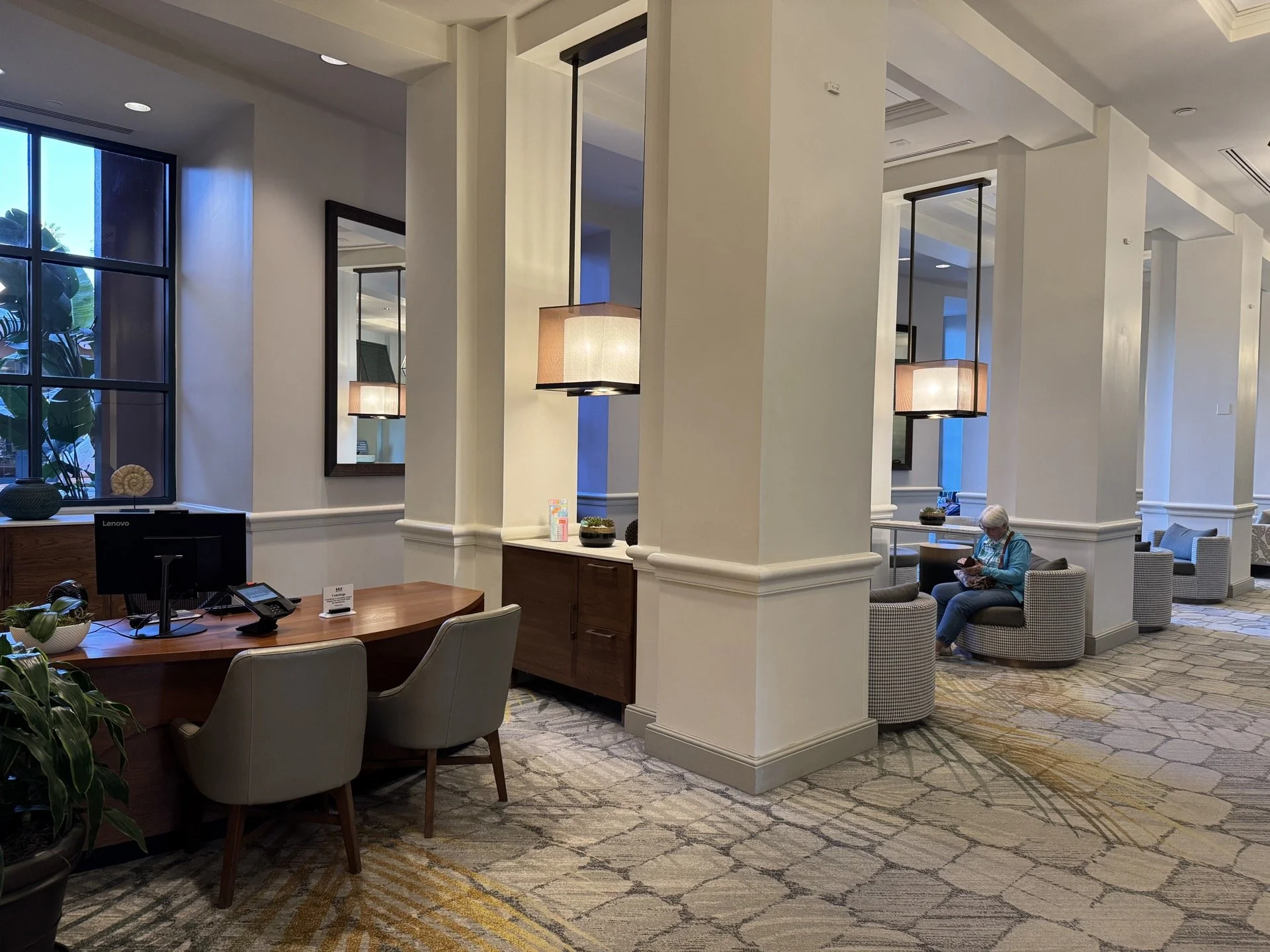 Because they cater to corporate and convention guests, the Swan, Dolphin, and Swan Reserve all do pretty well with having usable common areas. There is plenty of seating and outlets.